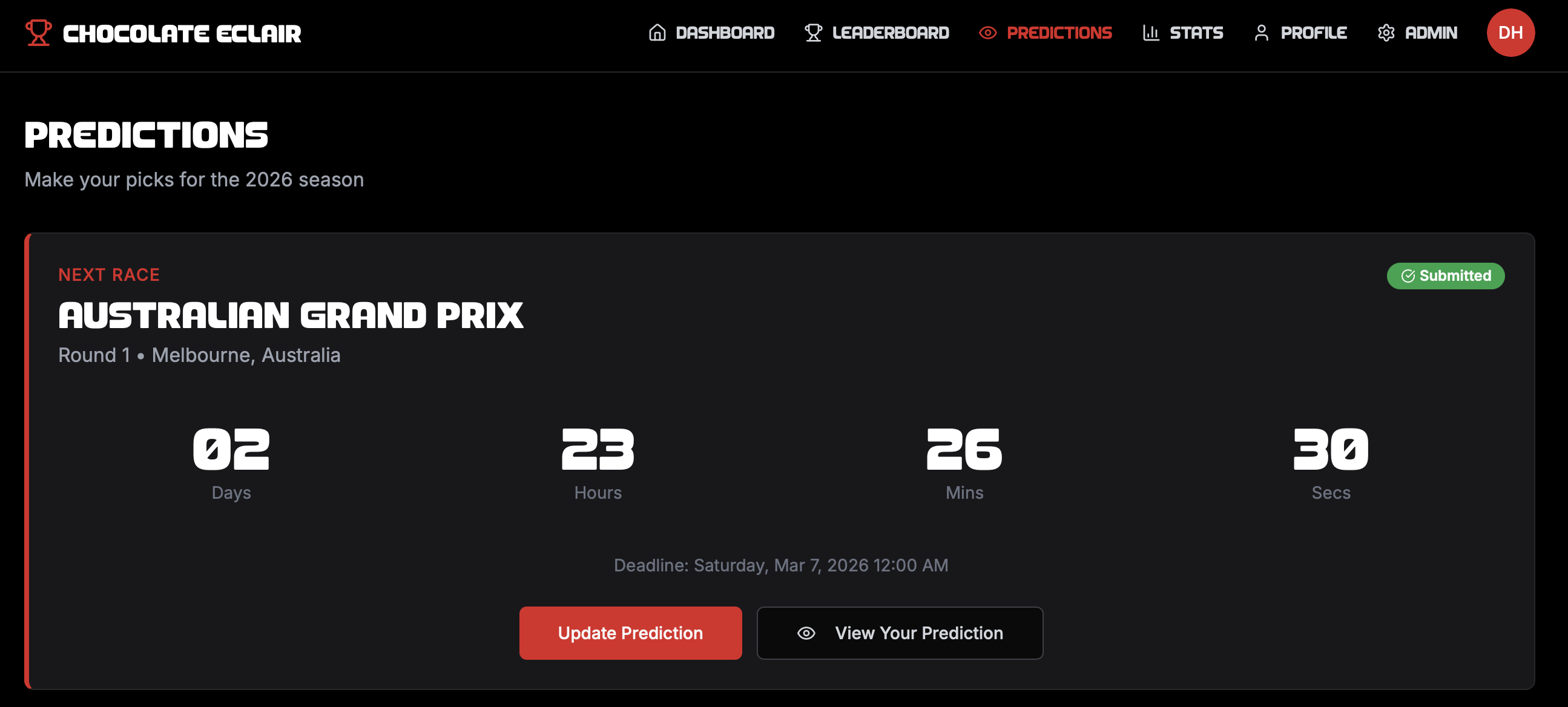 Another small change that will hopefully make the site much more clear. All times, for example the deadline for predictions, now include the users current timezone. The website already adjusts the global race calendar to show the proper times in the users current timezone and this makes it clear exactly what that timezone is.